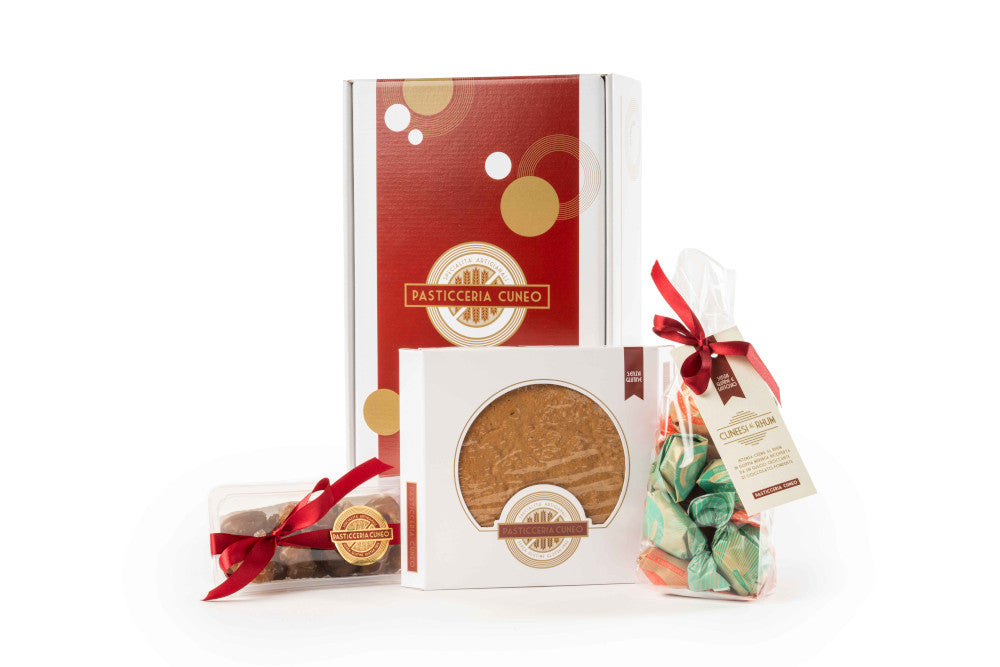 Questo Natale regala la Box Cuneo, al suo interno troverai la nostra torta di castagne, un astuccio di Marrons Glaces di Agrimontana ed i nostri irresistibili Cuneesi al Rhum!